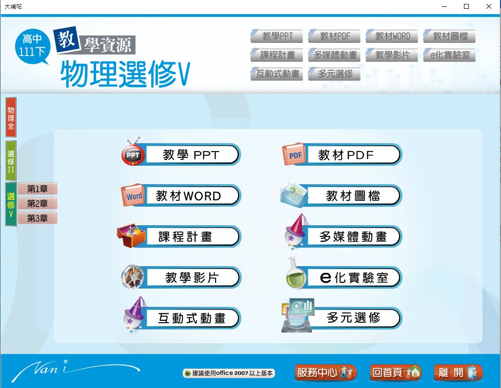 版 物理科(全、選修II、選修V) 教學光碟